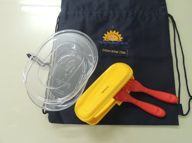 Each child owns and brings along a personal picnic set wherever they go. The purpose of this picnic set is to reduce plastic usage in TMC and to create an awareness to love and care for the environment through action.
