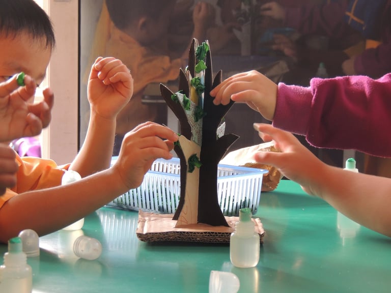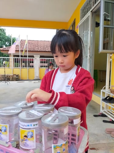 Visual Arts in preschool emphasizes the production and appreciation of creative works based on four fields which are drawing, pattern and design, form and build models and introduction to traditional crafts. Integration of these fields will give pupils’ opportunities to increase their interests, develop their personality, develop awareness and sensitivity to artistic values and the environment. Activities such as acorn art, fabric toy sewing, creative coloring, and puppet making practiced in TMC allow children to apply their knowledge in art production, explore various techniques and materials, and cultivate an appreciation for their own and others' creative expressions.