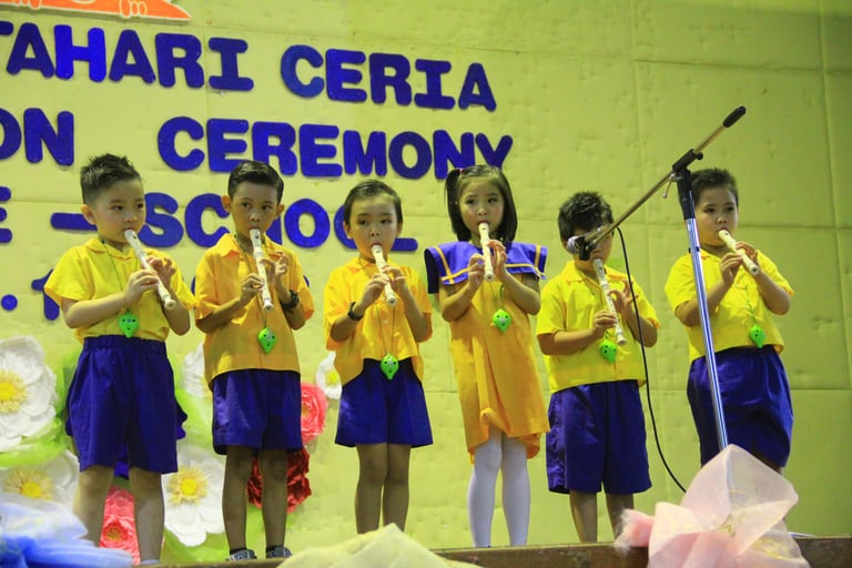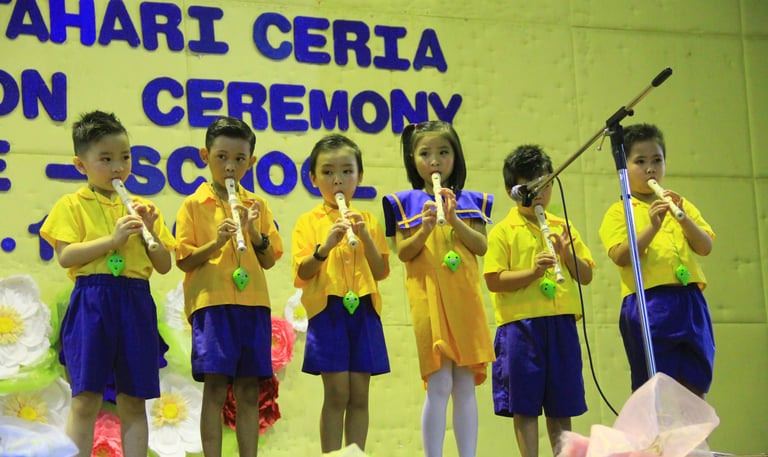 Music and movement are integrated into various creative activities that are both fun and entertaining. Students are provided with opportunities to showcase their talents and interests in music at their own developmental stages. Activities such as storytelling, poem recitation, singing, and dancing are conducted as competitions or stage performances, serving as annual highlights to celebrate and nurture their artistic growth.