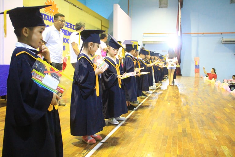Nationalism – Merdeka poem and traditional costume competition in August. Children learn about community occupations, and patriotic values and engage with the community.