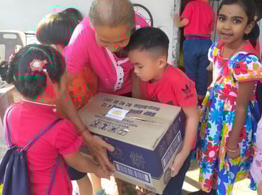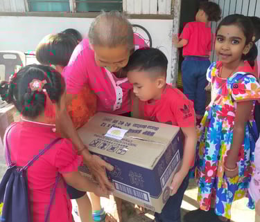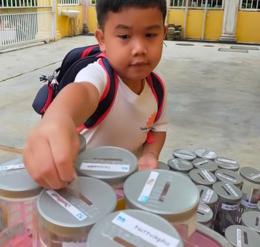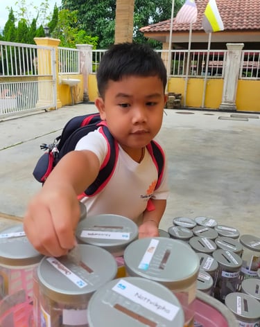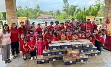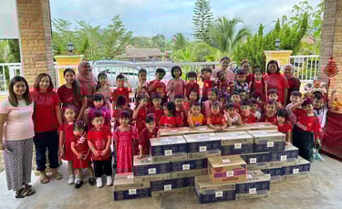 Example: In 2023, we conducted the Bamboo Bank with Jing Si Aphorism project. Each day, children dropped coins into a bamboo bank while reciting the Jing Si Aphorism quote, “Think good thoughts, speak kind words, do good deeds.” They collected a significant amount of money and collaborated with local leaders from Pengkalan Hulu, Kampung Tasek, and Klian Intan to distribute 30 food baskets to elderly individuals living alone in the community.